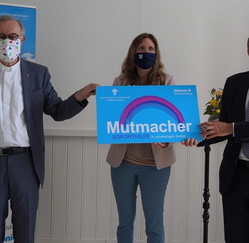 Seit einigen Wochen sammeln die Evangelische Landeskirche und das Diakonische Werk in Württemberg Spenden für das „Mutmacher“-Projekt. Das Ziel: Kleine Geldbeträge sollen ein Hoffnungszeichen setzen gegen die Corona-Depression. Landesbischof Dr. h. c. Frank Otfried July und Oberkirchenrat Dieter Kaufmann, Vorstandsvorsitzender des Diakonischen…