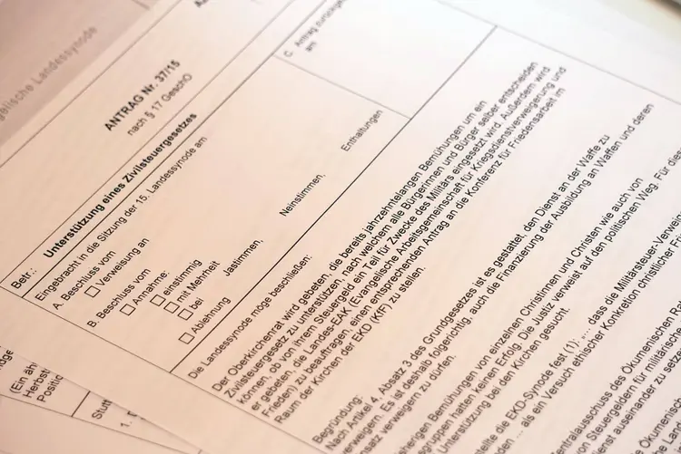 Der Synodale Dr. Harald Kretschmer bringt den Antrag zur Unterstützung eines Zivilsteuergesetzes ein, das es Bürgerinnen und Bürgern selber zu entscheiden erlaubt, ob ihr Steuergeld zum Teil auch für Zwecke des Militärs eingesetzt wird oder nicht. Der Oberkirchenrat soll dieses Bemühen unterstützen. Antrag wurde in den Ausschuss für Kirche, Gesellschaft und Öffentlichkeit verwiesen.