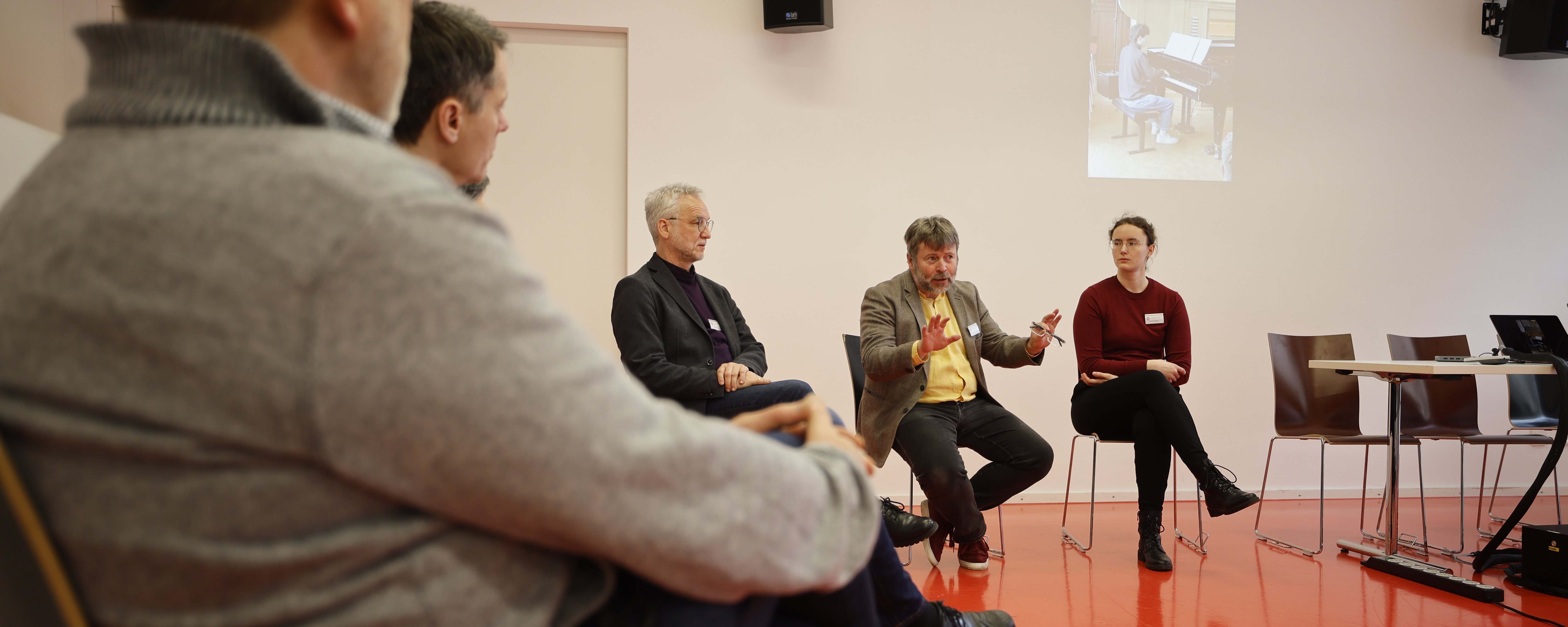 Oberkirchenrat Dr. Jörg Schneider, Leiter des theologischen Dezernats, antwortete mit einem Statement auf Prof. Dr. Dr. Günter Thomas. Schneider hob den Aspekt des Tuns im Musizieren und Singen hervor und verwendete dafür den Begriff des “Musicking”, den der Musikwissenschaftler Christopher Small geprägt habe. Er wolle zudem die sozialen Aspekte betonen: “Unter welchen Bedingungen entsteht ein Werk oder ein Song? Was und wer muss alles zusammenkommen, damit etwas gehört wird? Was passiert mit den zusammen musizierenden Menschen? Den Zuhörenden?”