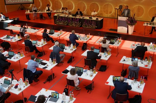 Kuschelig ist anders: In Zeiten von Corona sind die Synodalen bei ihrer Sommertagung lieber auf Distanz gegangen. Die Sicherheit ging vor.