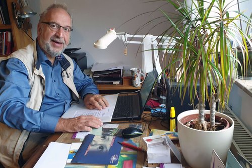Hans Leitlein in seinem Arbeitszimmer: Hier bereitet er sich auf die Synoden- und Ausschusssitzungen vor. Sein Anspruch an sich selbst: „Ich muss alle Beschlussvorlagen vor der Sitzung gelesen haben.“