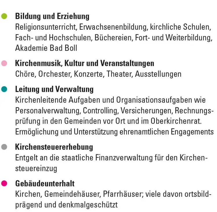 Der Staat möchte, muss und kann nicht alles machen: In Baden-Württemberg und in ganz Deutschland werden daher öffentliche Aufgaben oft von freien Trägern übernommen, die durch öffentliche Zuschüsse nur teilweise refinanziert werden. Deswegen verwenden die Kirchen in Baden-Württemberg zur Finanzierung auch Kirchensteuermittel.